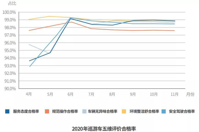 《报告》显示,根据乘客评价,西安巡游车环境舒适整洁度一直保持在较高水平,同时车辆无异味、服务态度、安全驾驶等方面都有明显提升,合格率均超过98%。此外,西安在过去一两年内还增加2000多辆巡游出租车,总量增至15000多辆。