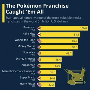 全球最赚钱的IP是谁?星球大战、漫威电影宇宙,还是迪士尼公主、米老鼠? 都不是!宝可梦才是顶尖吸金IP。