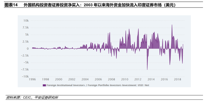 集中退市对于印度市场的短期影响有限,SENSEX30指数短期下行10%后开启持续17年的牛市。2003年2月17日,印度SEBI出台《证券退市指引》后,孟买SENSEX30指数波动下行10%左右,自2003年5月初开启17年的长牛。印度市场长期的上行趋势很大程度上源于资本市场制度的不断完善,2002年印度实施T+2结算制度与国际接轨,2006年允许海外公司在印度上市,在资本市场改革的进程中退市制度无疑也是重要一环。在此背景下海外机构投资者自2003年起加快流入印度证券市场,成为印度股市的重要支撑。