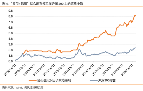 月度股票建议部分,我们采用“货币+信用”综合配置模型(模型具体见《资产轮动策略研究(二):构建大类资产的“货币+信用”轮动轮盘》,为多平策略)。模型自2018年5月后为样本外跟踪时期,业绩表现较为显著,2019年以来样本外跟踪净值增长58.79%。