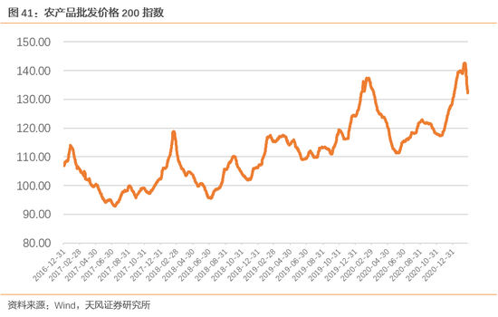 2021年1月,农产品价格200指数均值为136.5,2月指数持续上涨,截至2021年2月26日,均值超139。