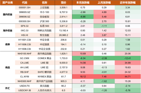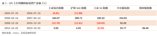 权益资产方面,各类资产涨跌互现,其中中小板指数表现突出,在近三轮CPI上行时期均录得正收益。