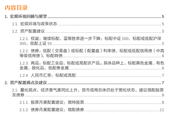 2.1. 量化观点:经济景气度同比上升,货币信用总体仍处于宽松状态,建议增配股票及债券