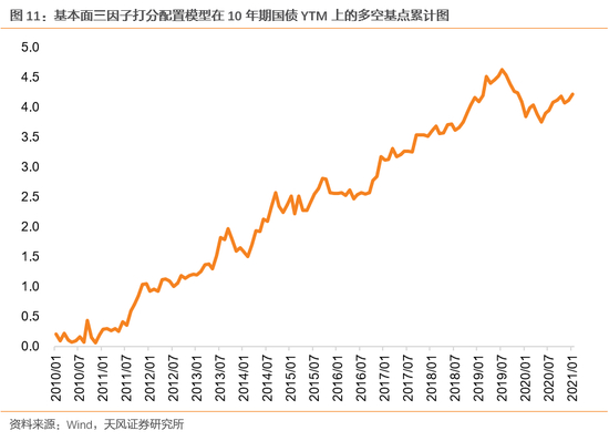 月度债券建议部分,我们采用基本面三因子打分配置模型得出配置建议(模型具体见《FICC系列研究专题(一):如何抑制宏观信息“过拟合”?——宏观数据的去噪、降维及应用》,年化收益,为多空策略)。模型自2019年3月后为样本外跟踪时期。