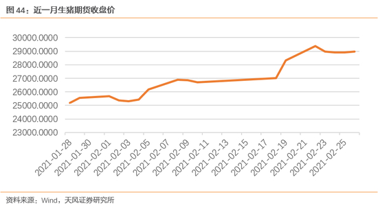 截止2月27日,全国生猪均价27.37元/kg,在春节后消费淡季叠加猪病疫情导致的淘汰母猪的情况下,虽较节前30元/kg左右下调明显(智农通),但冬季疫情影响部分地区产能,预期未来对猪价有一定支撑,节后15kg仔猪价格已快速抬升超150元/头至1899元/头(涌益);白羽肉鸡节后出栏低预期,毛鸡创2020以来新高,达到9.55元/kg,环比上涨18.63%,鸡苗价格环比跳涨62%至5.44元/羽(博亚和讯)。