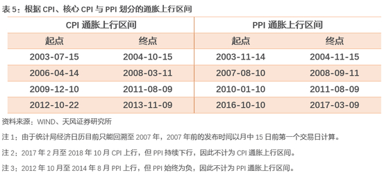 结果显示,2003年开始,我们根据CPI与PPI划定的通胀上行区间各有4段。其中,前三段CPI与PPI上行区间的重合度均较高。