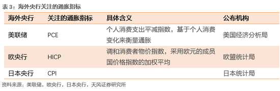 海外主要央行关注的通胀指标是CPI或某种程度上的消费支出物价指数(类CPI)。
