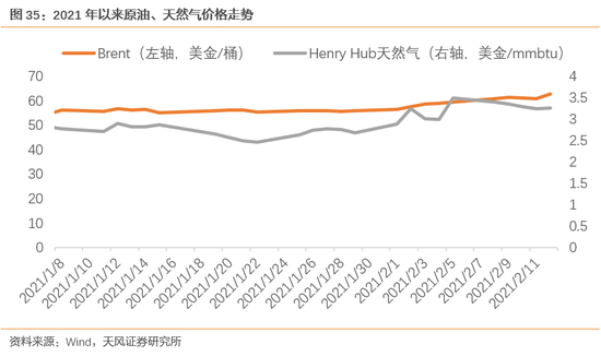 2021春节期间,海外能源市场异动,原油价格超预期上涨,Brent原油价格已经站稳60美金以上,达到62.59美金/桶。天然气价格,美国HH天然气期货也已经突破3美金达到3.25美金/mmbtu。