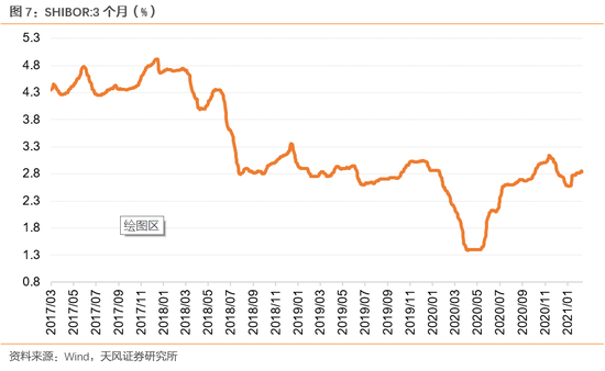 2021年以来的权益走势与流动性的松紧联系紧密。1月20日之前央行为了对冲信用违约事件的冲击以及应对跨年和春节资金需求向市场超额投放流动性,推动股票市场提前进入春季躁动,股市的上涨引发了新发基金规模的爆发。资金的流入与股市的上涨形成了正反馈。央行在春节前2-3周又开始减小流动性投放的规模,市场也跟随展开调整。从春节之后的流动性溢价来看,目前需要关注的不是央行操作的规模,而是利率的水平。春节之后随着资金需求的下降,即使央行回笼流动性也没有拉高资金的价格。今年上半年预计央行还是会维持常态化的货币操作,保持流动性中期紧平衡。