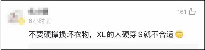 有网友表示,喜欢可以直接买,不要硬撑损坏衣物,XL的人硬穿S就不合适。