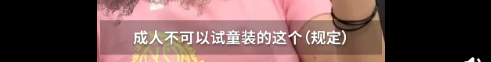 成人试穿童装,可能会造成两种后果,一是将衣服撑大,二是可能将护肤品、彩妆等粘在衣服上。