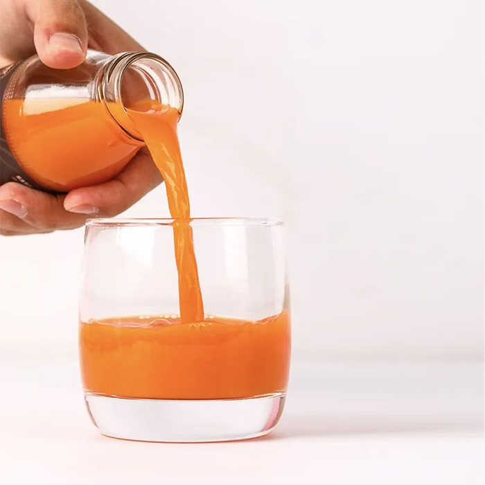 取材自胡萝卜和沙棘果的Ta在健康方面自然是没得说:不含脂肪,糖分来自果蔬本身,163kJ/100ml低卡路里,免去喝了就发胖的后顾之忧。
