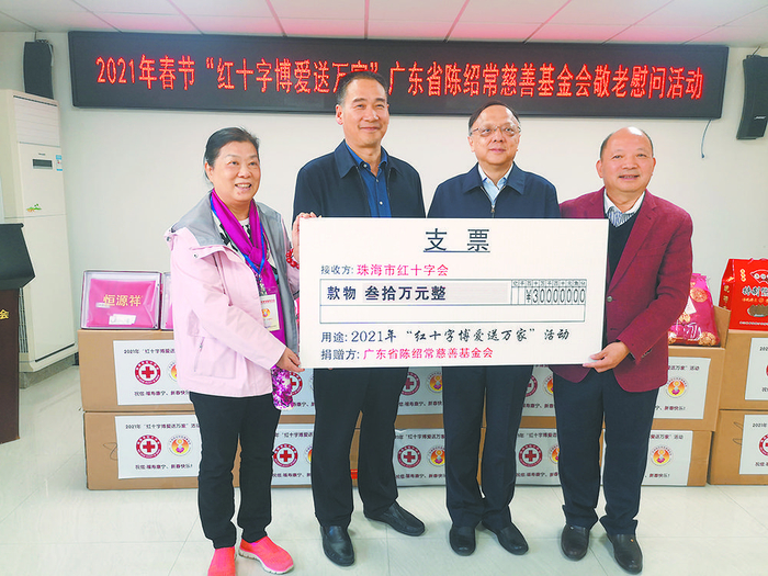 2021年春节前夕,为关心关爱困难群众,在广东省红十字会的指导下,珠海市红十字会与基金会联合开展“红十字博爱送万家”敬老慰问活动。广东省红十字会常务副会长史先东、珠海市副市长阎武亲临现场并看望慰问困难群众,为困难群众送去党和政府以及社会各界爱心人士的关怀。