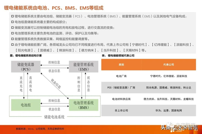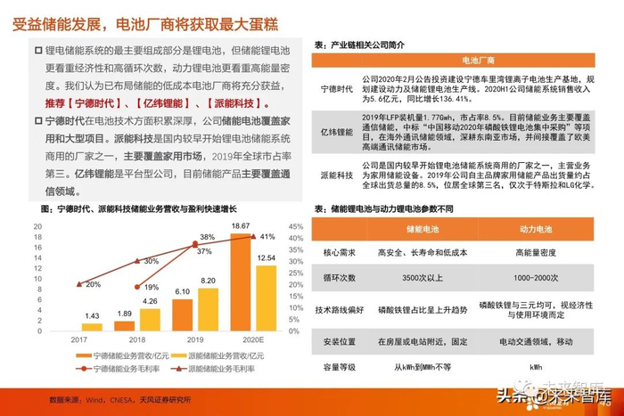由于锂电储能前景广阔,各领域龙头公司均已不同程度进行布局,代表上市公司有【宁德时代】、【亿纬锂能】、【派能科技】、【阳光电源】、【固德威】、【锦浪科技】、【德方纳米】、【当升科技】、【天赐材料】等。