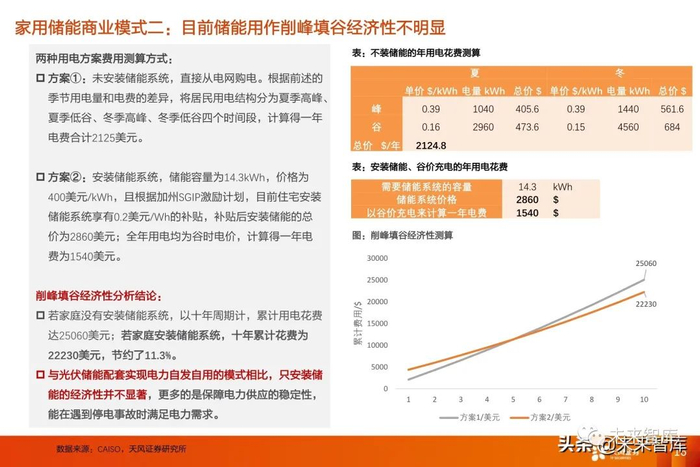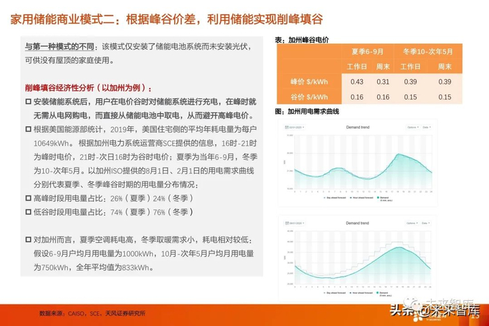 家用储能商业模式二:根据峰谷价差,利用储能实现削峰填谷。