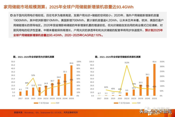 家用储能市场规模测算:2025 年全球户用储能新增装机容量达93.4GWh