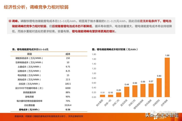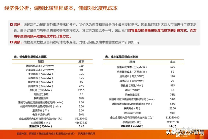 经济性分析:调频比较里程成本,调峰对比度电成本