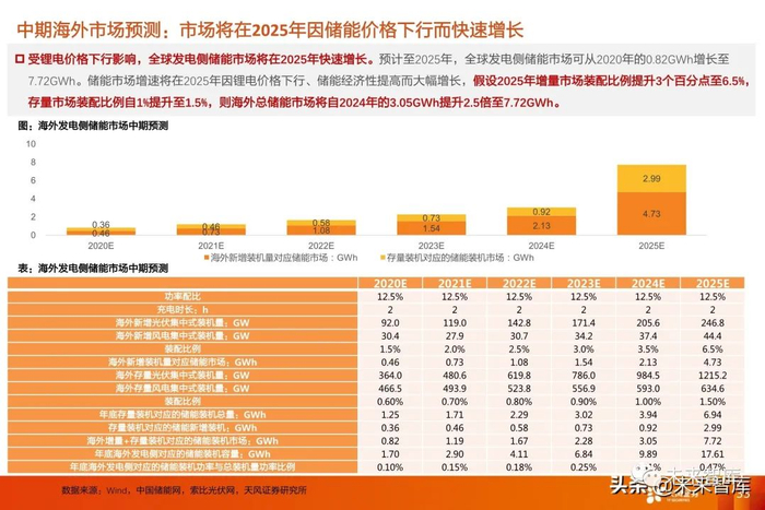中期海外市场预测:市场将在2025年因储能价格下行而快速增长