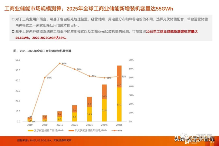 工商业储能市场规模测算:2025 年全球工商业储能新增装机容量达55GWh。