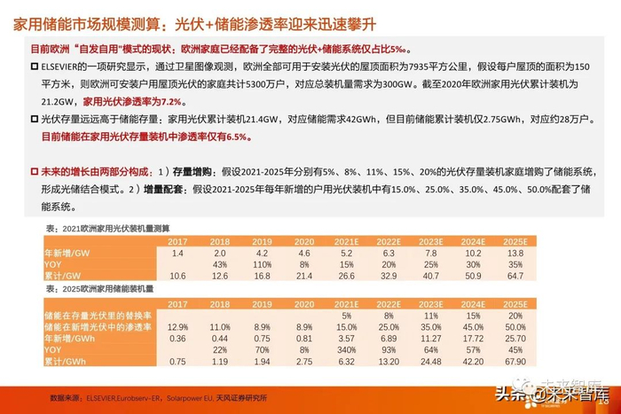 目前储能在家用光伏存量装机中渗透率仅有6.5% 。