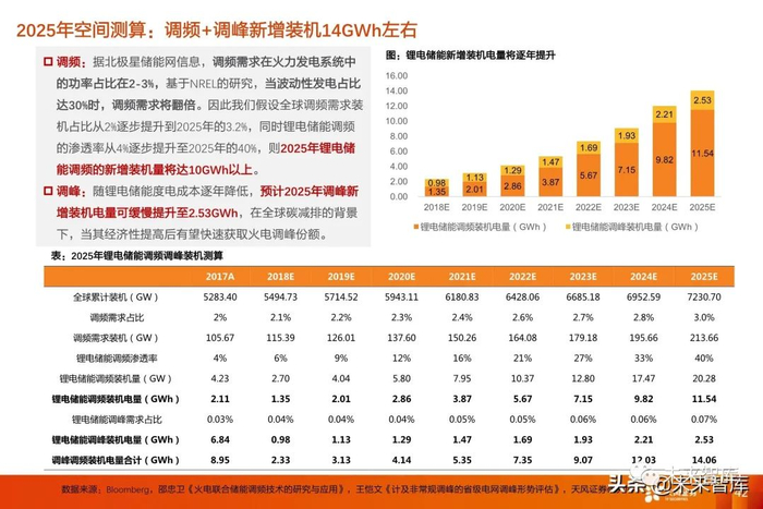 2025 年空间测算:调频+ 调峰新增装机14GWh 左右