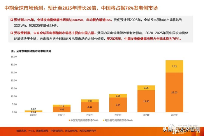 中期全球市场预测:预计至2025年增长28倍,中国将占据76% 发电侧市场