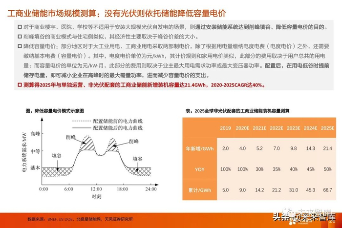 测算得2025年与单独运营、非光伏配套的工商业储能新增装机容量达21.4GWh ,2020-2025CAGR 达40% 。