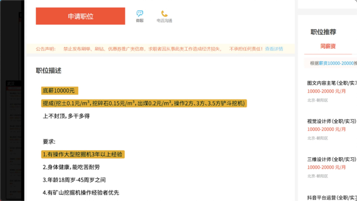 矿场通常需要驾驶员有 3 年以上驾驶经验,薪资也更高,底薪便能上万,每挖一立方还有 0.1 ~ 0.2 元的提成。