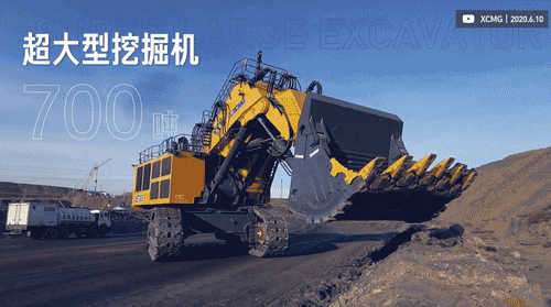 除了常见的挖掘机,矿场更有这种重达 700 吨,高 9.4 米的超大型挖掘机,铲斗容量达 34 m³,2 ~ 3分钟就能装满一辆 300 吨的矿车,一铲斗就赚几十元。