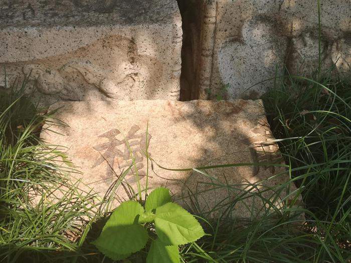 梁士诒故居墙角的裂碑