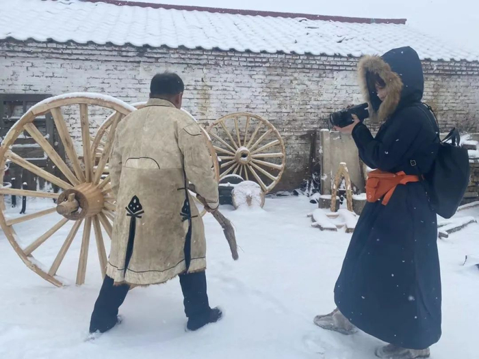 她的社交账号头像用的同一张,天寒地冻的苍茫雪地里,她在巴尔虎一个冰封的湖上奔跑。