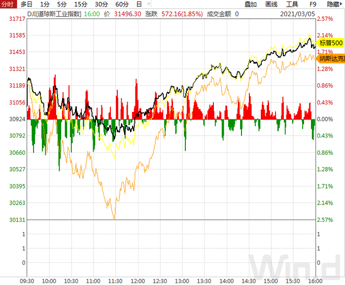 美国股市周五盘中一度大幅下跌,投资者对于利率上升的恐慌在盘初有所体现,在非农数据大幅好于预期后,三大股指均大幅反弹收涨。