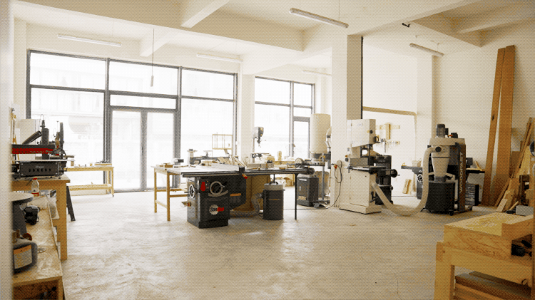 老鱼的工作室位于成都三圣乡景区,大概有210多平米,最大的开间里遍布着一台台木工机械,桌上和墙上罗列着各式各样的工具,还有满满一架子的木料。