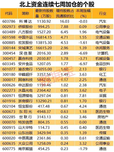 北上资金连续7周买入股