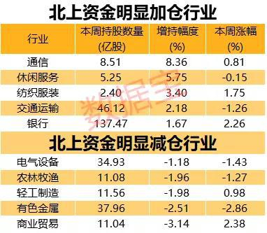 通信行业获北上资金重点加仓