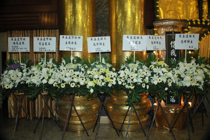 “老搭档”周星驰送上花篮,写着“永远怀念”四字。