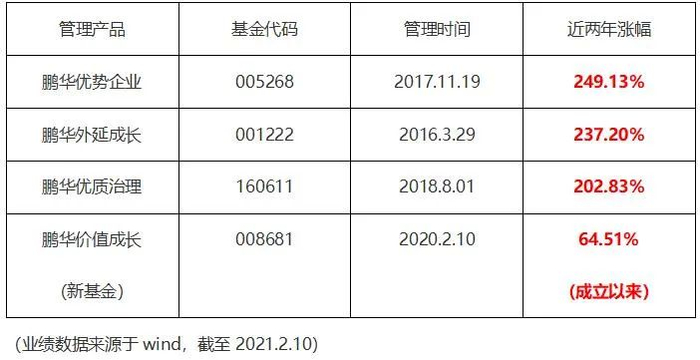 陈璇淼目前在管产品近两年净值增长率均超200%,2020年新基成立以来60%+。