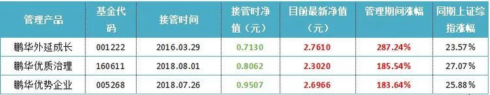 目前鹏华外延基金的净值从接手时候的7毛钱,已经变成了现在的2块多。其余两只接手的基金也是类似,均有上佳表现,堪称净值修复专家。