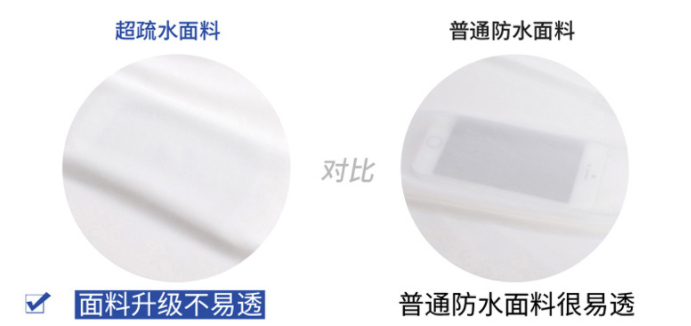 我们把普通面料与疏水面料放在一起对比一下,就知道具体差别了~