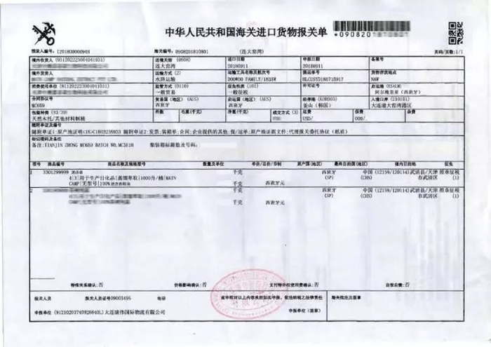 进口单据,如下