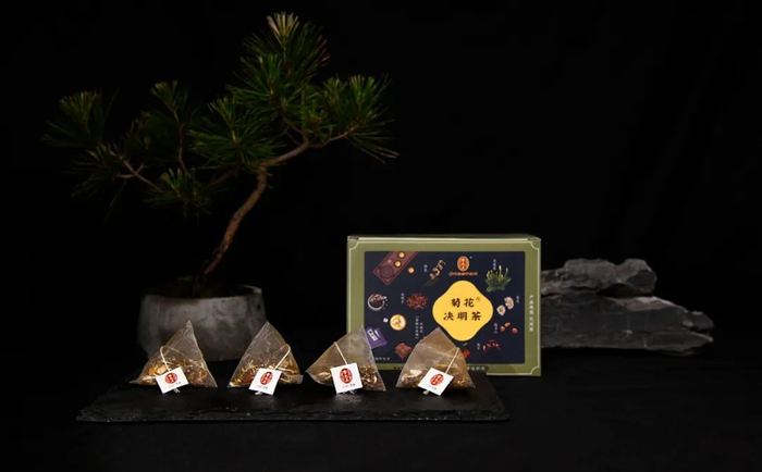 药材精心研磨至特定粗细程度后,打包在漂亮的三角茶包里,用100度开水冲泡,就能释放大部分效力。