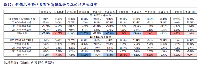 我们的统计数据显示,过去两年机构投资者为买入成长股,选择抛售组合中流动性较好的价值股,使得价值股在过去两年的市场表现并非只是跑输成长,甚至无法战胜业绩最差且估值昂贵的股票。市场在过去二年价值发现功能系统性缺失。2020Q4开始,价值股重新战胜绩差股,而近期出现跑赢成长股的迹象,价值回归正在来临。我们基于ROE的预期收益率也指示市场仍然广泛存在机遇,如我们此前预计:价值/成长,大盘/小盘之间的关系应该得到重新平衡。当下应该配置:以地产、保险、银行、交通运输、钢铁、采掘、建筑、农林牧渔(养殖 、种植链)为代表的PB-ROE视角的价值股。全球高名义增长下押注景气扩散,中小市值选股请参考《中小市值的现象与本质》:其中传媒、计算机个股机遇较多。