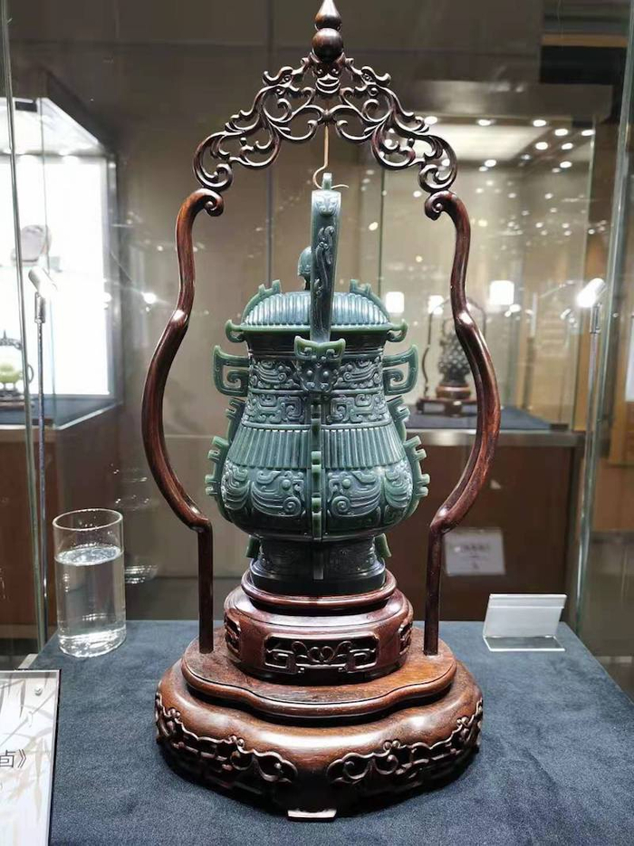 陆永福先生捐赠作品《青玉提梁卣》 图源:上海工艺美术博物馆