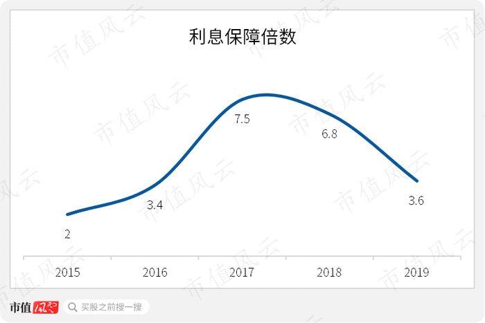2017-2019年,公司的利息保障倍数趋于下降,由7.5降至3.6,显示公司的偿债能力有所下降,但是风险还不算大。