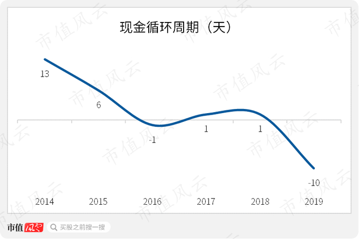 现金循环周期也显示,公司的购存销周期在缩短,由2014年的13天缩短至2019年的负值。通过占用上下游资金做自己的生意,印证了公司作为行业龙头的强势地位。