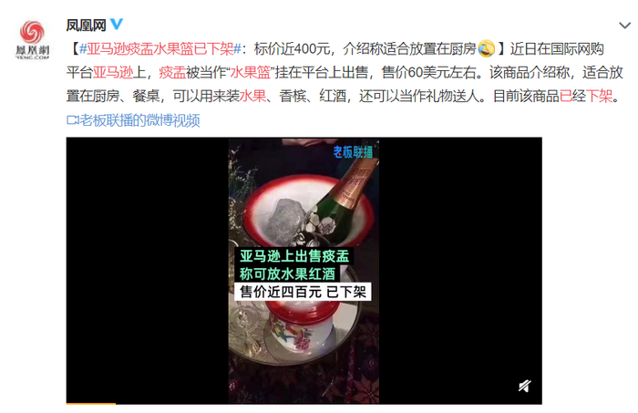 最近,中国的痰盂在亚马逊上爆火。商家称其为1960年代的传统工艺品,展示图上将此宝物用作果蔬篮和香槟冰桶,有些还盛了满满的法棍。