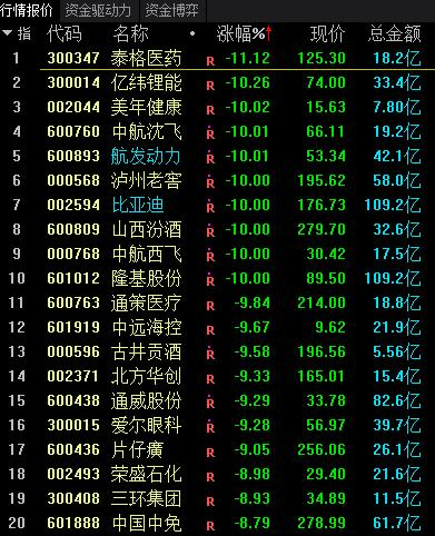 大市值白马股的集体下跌,严重拖累股指表现。统计数据显示,截至收盘,沪深300指数总计300只个股中,有10只个股跌停或跌幅超10%,38只个股跌幅超7%。