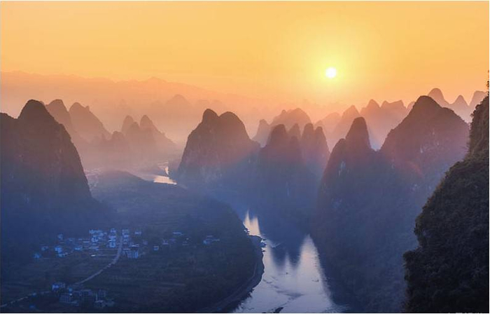 登山的人都有过类似体会:我们看群山的时候,近处的山是偏绿色的,再远眺,开始泛蓝。如果阴天光线较暗,远处的山就成了青黑色的剪影。这就是“远山如黛”。