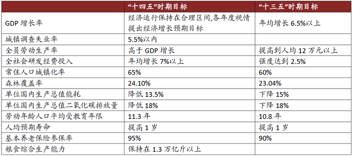 资料来源:《政府工作报告》,《国民经济和社会发展第十三个五年规划纲要》,中金公司研究部