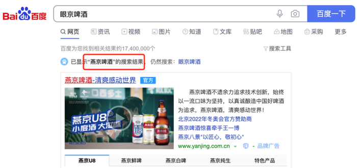 比如你喝一半没酒了,跑去超市对阿姨说给我来一箱京燕啤酒,阿姨除了嘀咕你是个酒蒙子外,还会一脸微笑的说你要的是燕京吧?或者阿姨就不搭理你,直接给你燕京啤酒。